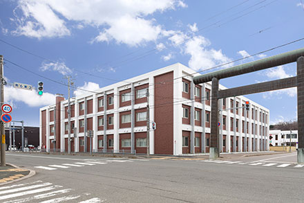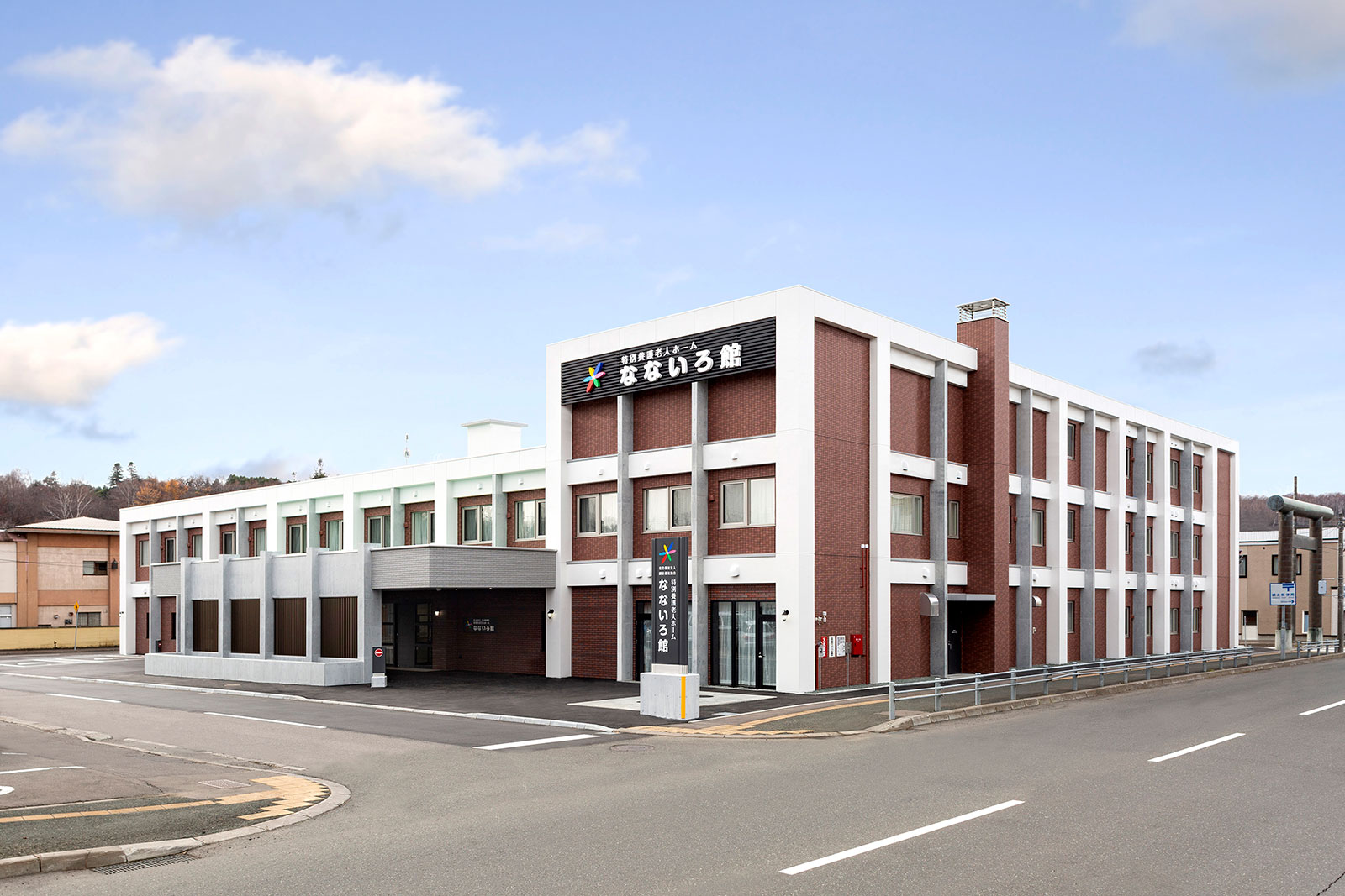 特別養護老人ホーム レインボーハイツ移転改築工事基本・実施設計業務 2020年11月/網走市/鉄筋コンクリート造3階建/4,190.17m2/新築 80人定員の特別養護老人ホームです。利用者にとって居心地の良い空間を目指し設計しました。白を基調としたエントランスはトップライトから自然光を取り込み、明るい空間としました。